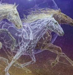 動物たちの生態を丹念に観察し、その卓越した描写力で魅力を引き出す川又聡。鋭い眼差しを捉え、モノクロームの美しさと絶妙な色彩の調和によって、生き生きとした姿を描き出し、多くの人々を魅了してきました。本展では、力強く駆け抜ける馬、猛禽類の迫力、凛々しい豹や虎、穏やかな兎など、多彩な動物たちの姿をご紹介します。墨の濃淡や繊細な筆致が生み出す毛並みや表情の豊かさにご注目ください。その瞬間の躍動を感じながら、生命の鼓動が響く川又氏の世界をどうぞご堪能ください。